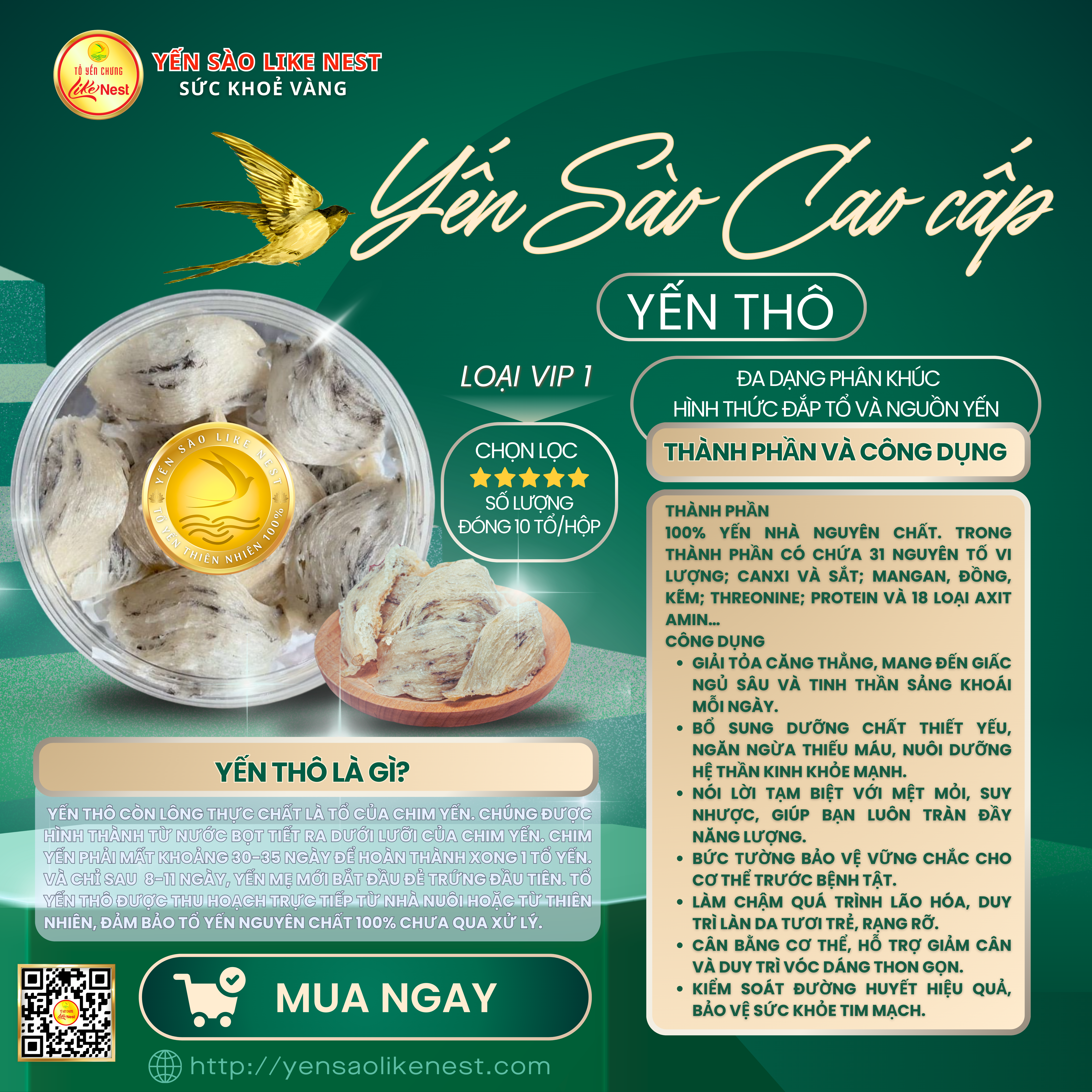 Đặt hàng ngay tại website yensaolikenest.com để nhận ưu đãi. Sản phẩm được giao tận nơi, đóng gói kỹ lưỡng, cam kết chất lượng.